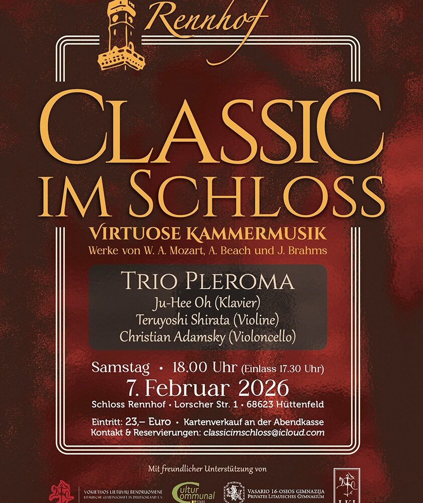 Erleben Sie klassische Musik in einzigartigem Ambiente! Die Veranstaltungsreihe „Classic im Schloss“ lädt Sie ein, hochkarätige Konzerte im stimmungsvollen Saal von Schloss Rennhof zu genießen.